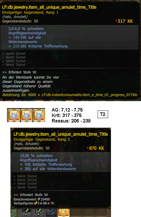 Es ist also theoretisch möglich sich das Goldene Amulett (T3) zu erfarmen. Das Silberne Amulett (T2) ist nicht als Drop enthalten.